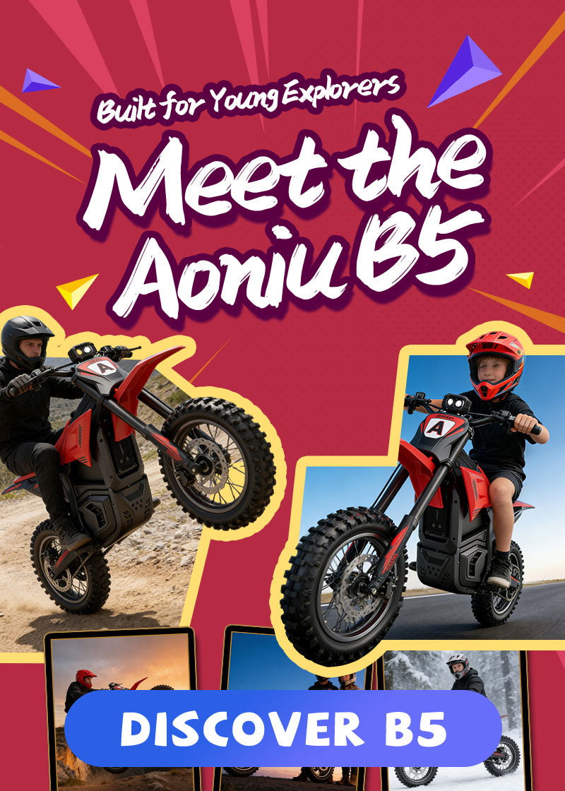 Speed depends on the model, rider weight, terrain, and battery level. For AONIU B5, the listing states a top speed up to 37 mph, with 3 speed modes: 15 mph (Beginner), 22 mph (Cruise), and 37 mph (Sport). Off-road riding is more about control than top speed. With a 2600W peak motor, B5 should feel quicker off the line than similar bikes around 2200W peak, while higher-power options (e.g., ~3200–3500W) may still accelerate harder.