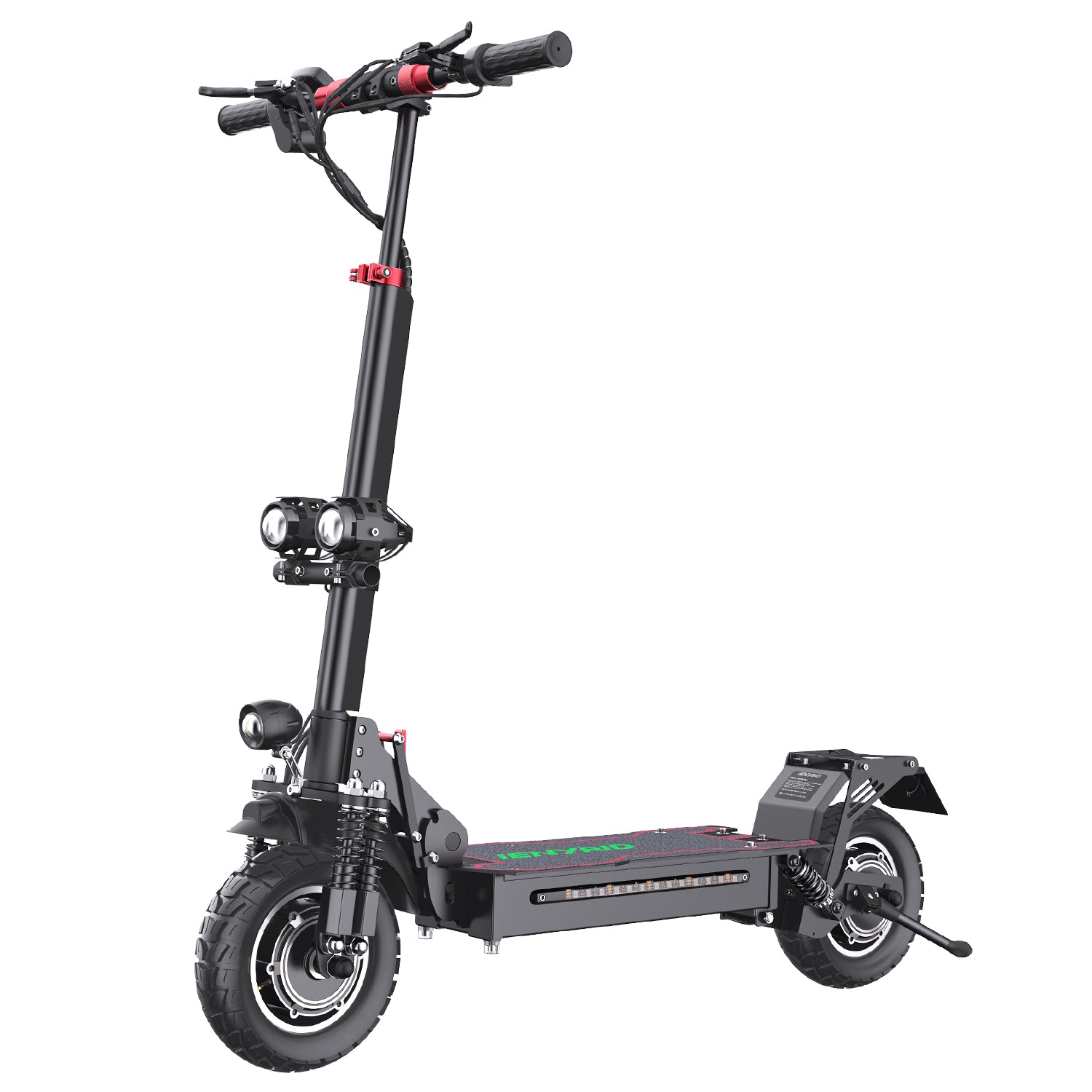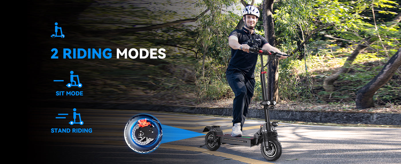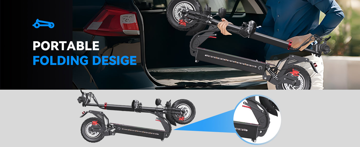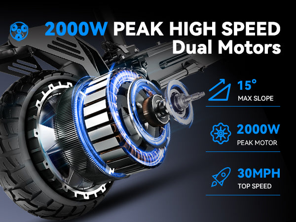 Dual Motor e Scooter: The ES10 Adults Electric Scooter is equipped with powerful front and rear wheel drive 2000W motors, which max range reachs up to 37 mile, max speed reachs up 30 Mph, it is very easy to use and zip you around quickly, includes a detachable and height adjustable seat, the electric scooter can be folded even if the seat do not remove.