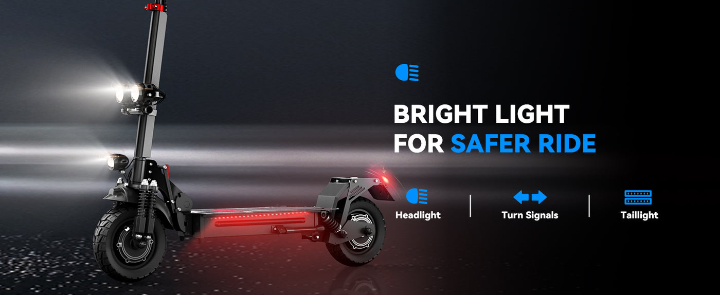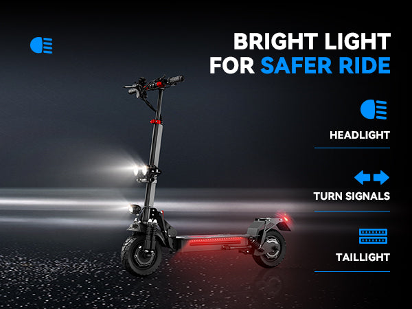 Three Headlights is Safer: The configuration of 3 headlights is the unique setting of ES10 electric scooter, the LED light beads can realize the free switching of strong and low light,very thoughtful consideration of the safety needs of night riding, you'll be more visible and can see the road ahead clearer in the dark.