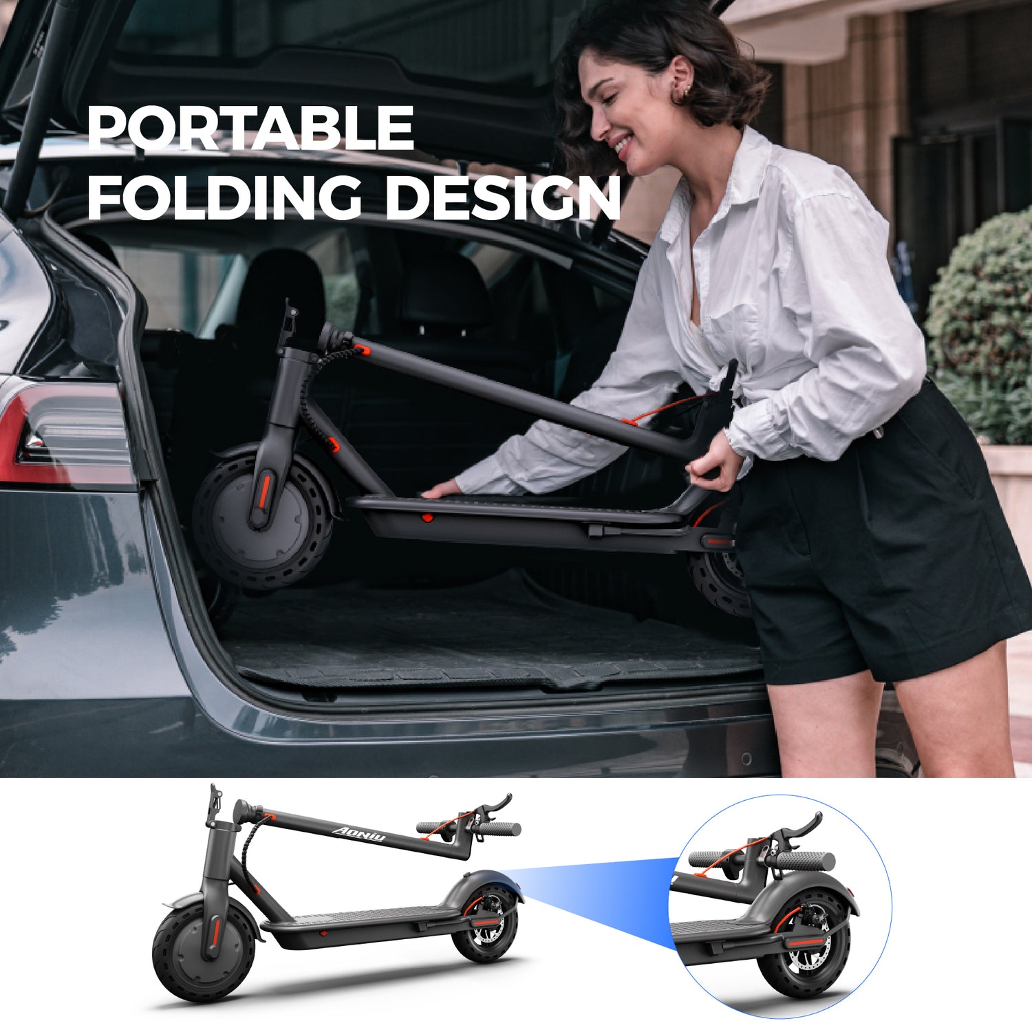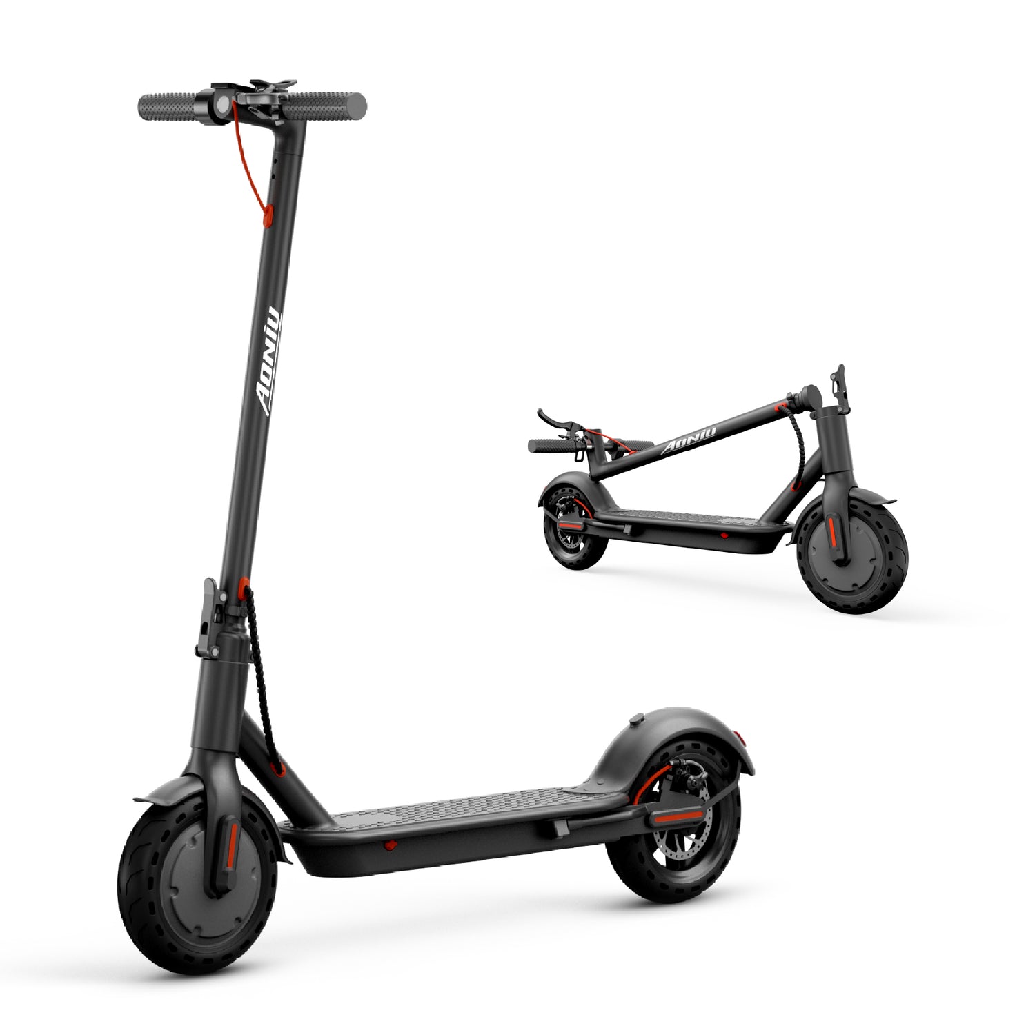 - 【Foldable Electric Scooter for Adults】N1 electric scooter has front and rear suspension system,plus mechanical disc brakes,adjustable seat height,multiple shock absorption design. The scooter can be folded in one step, which is easy to carry and to store in car boot.