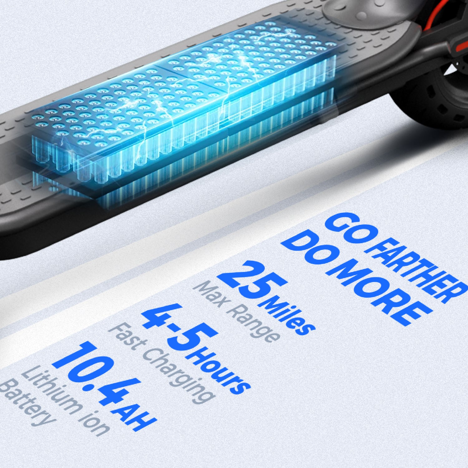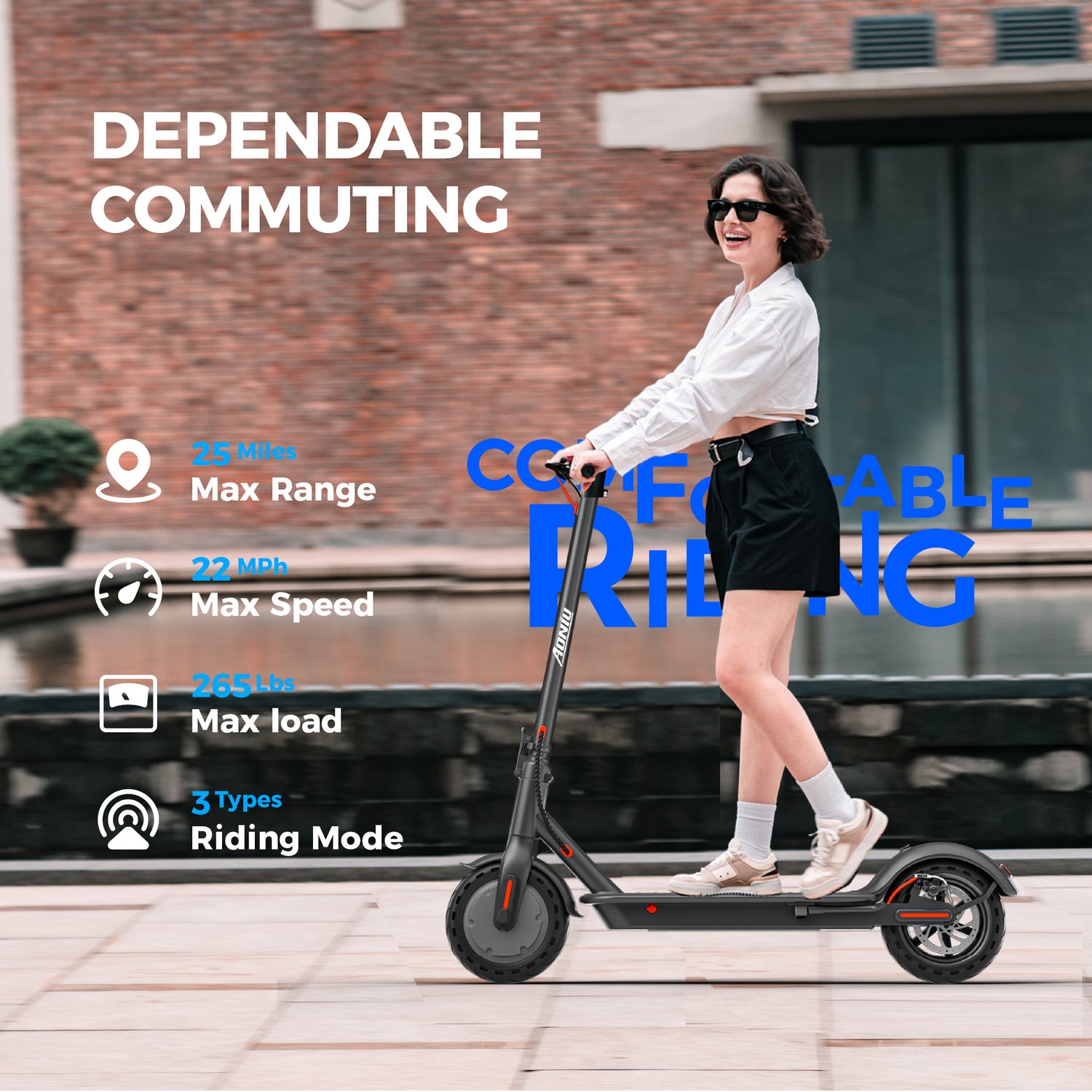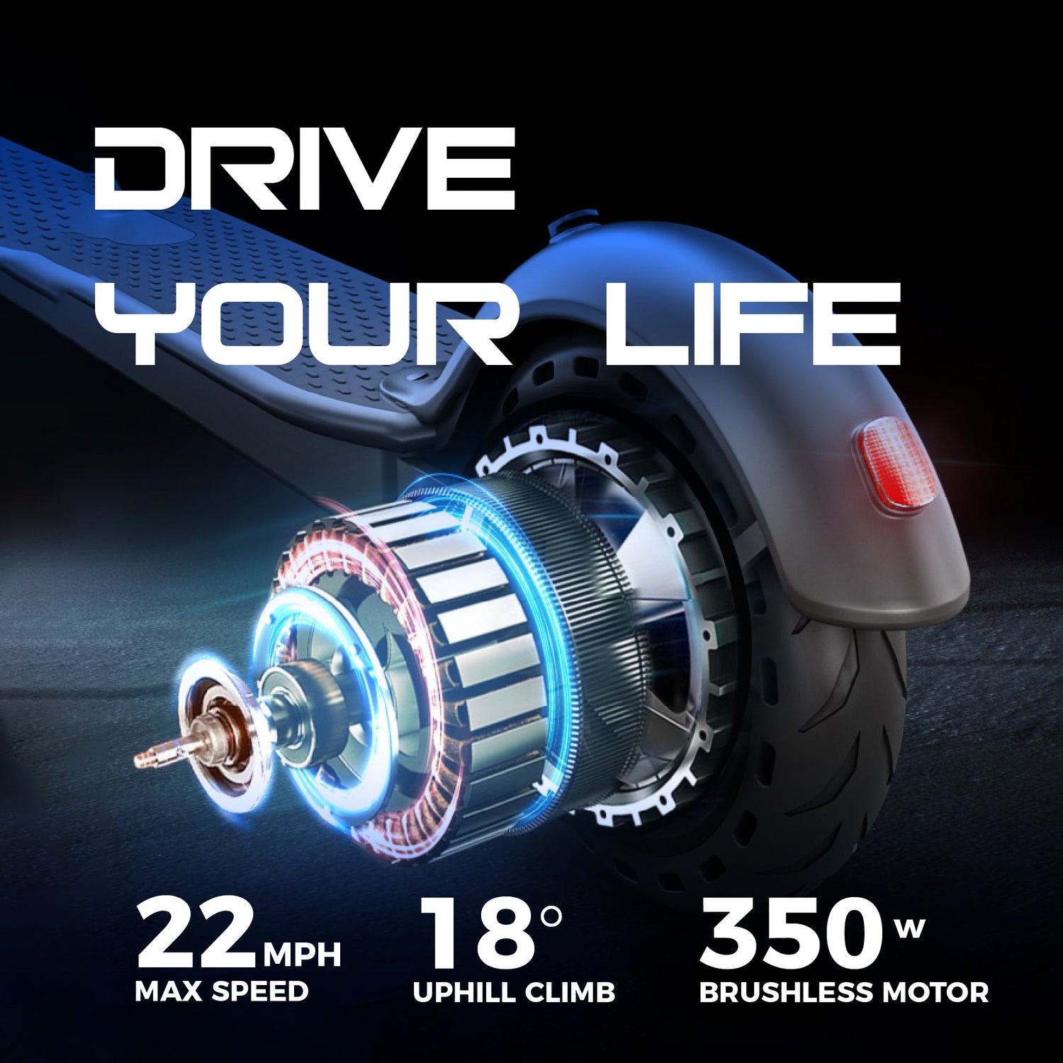 - 【350 W Powerful Electric Scooter】 Equipped with 350 W powerful motor and high capacity battery, electric scooter allows for speeds up to 22 mph and max range up to 22 miles under specific conditions.the electric scooter was powerful enough to move easily.Perfect for daily commuting or short trip.Max load is 264 lbs.