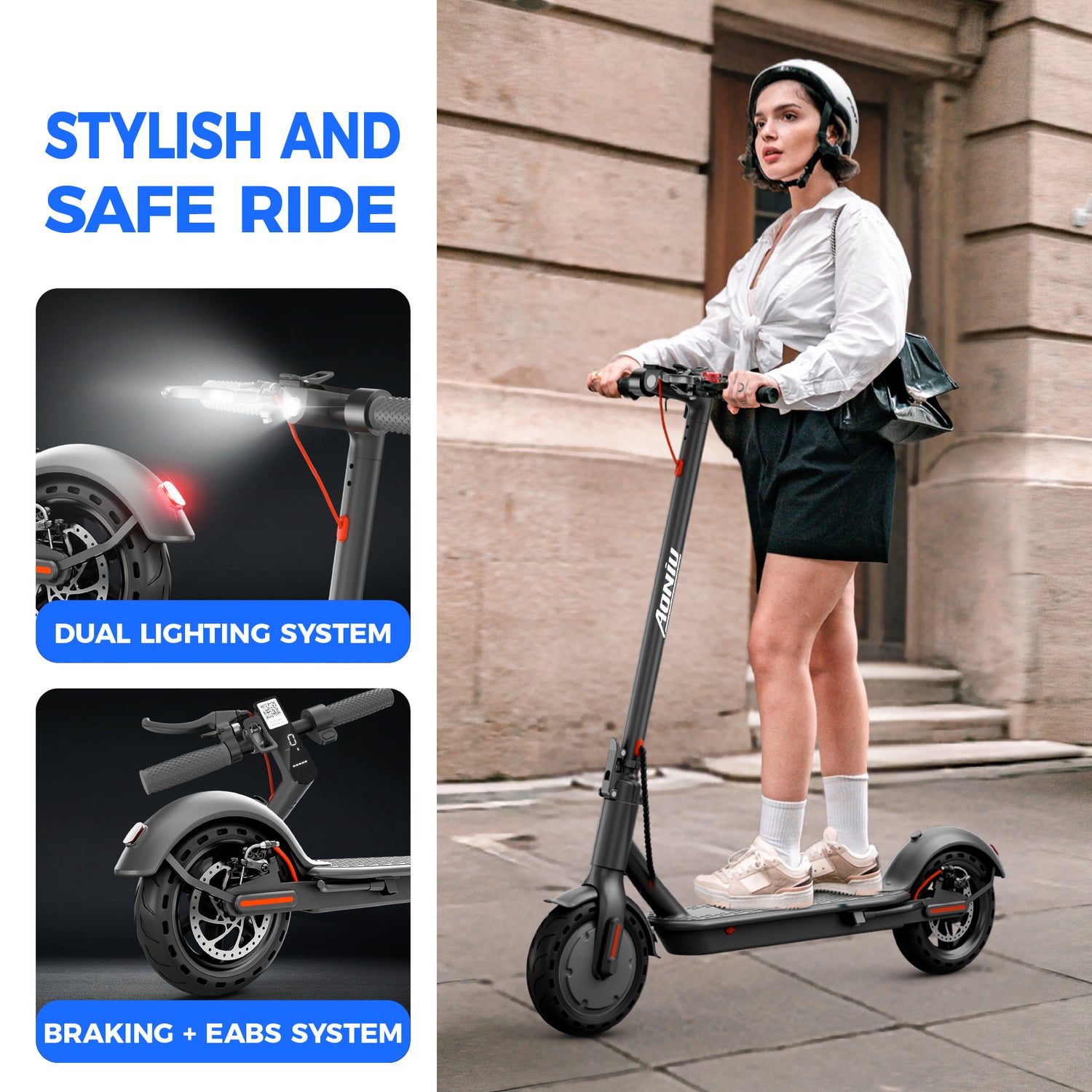 - 【Stay Comfortable & Safe】 As a worthwhile commuting e-scooter, scooter electric for adults improved 8-inch durable pneumatic tires,which deliver excellent shock absorption.You can see this scooter accelerate extremely smooth even turning.The dual brake system features disc braking , providing safer and more stable braking.