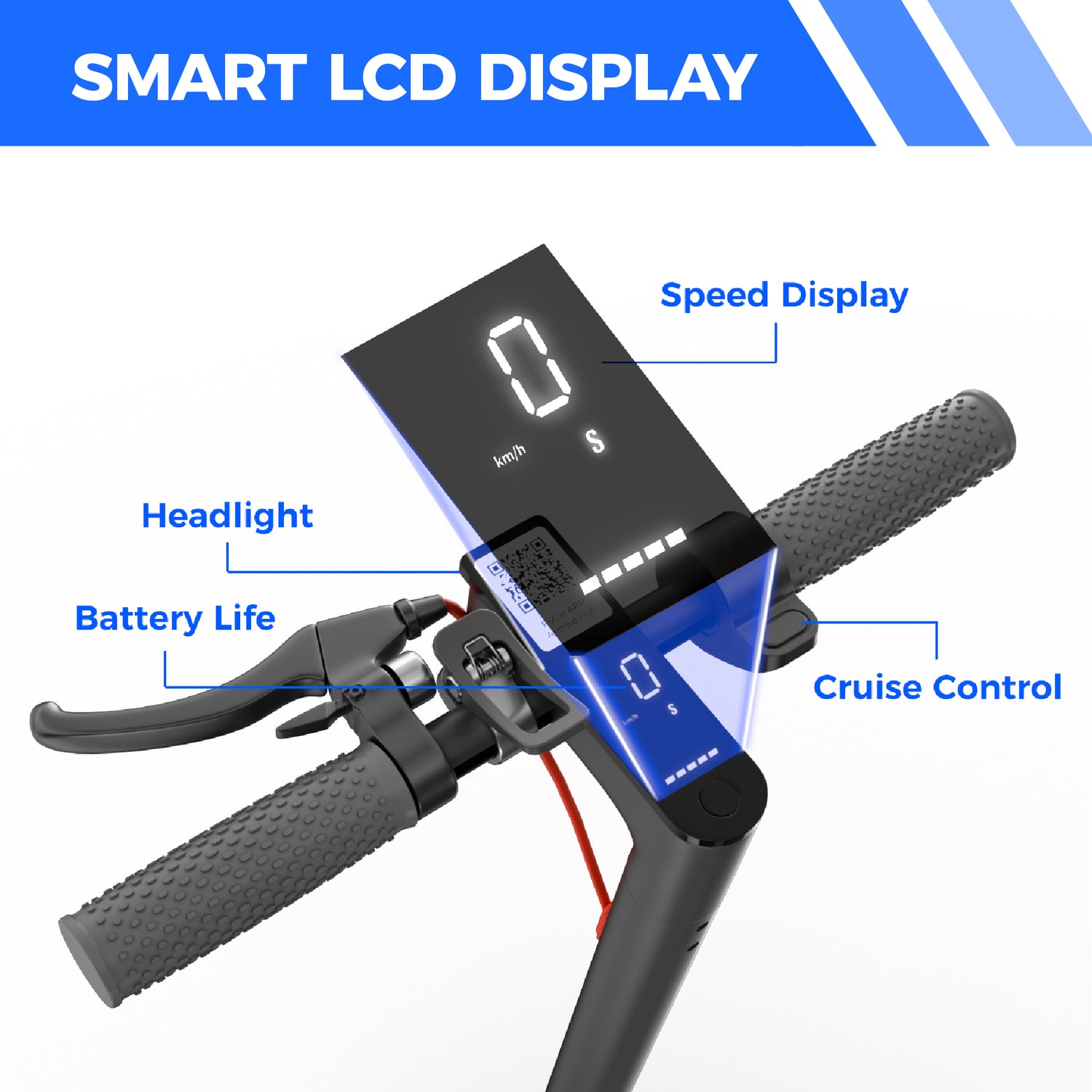 - 【LED Display & Safety for Commuting 】 You can clearly check the current speed, speed mode, cruise control on your LED display. lt can automatically illuminate in the dark, significantly improving the safety of riders in low light or nighttime conditions. When braking, the safety warning taillights will flash to prevent rear end collisions. The comfortable handlebars provide a more relaxed riding position and more flexible control, avoiding fatigue caused by using straight handlebars