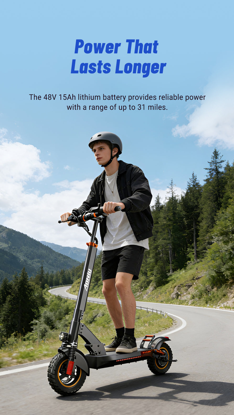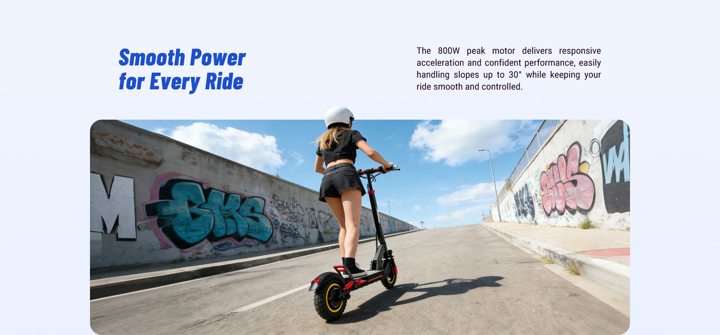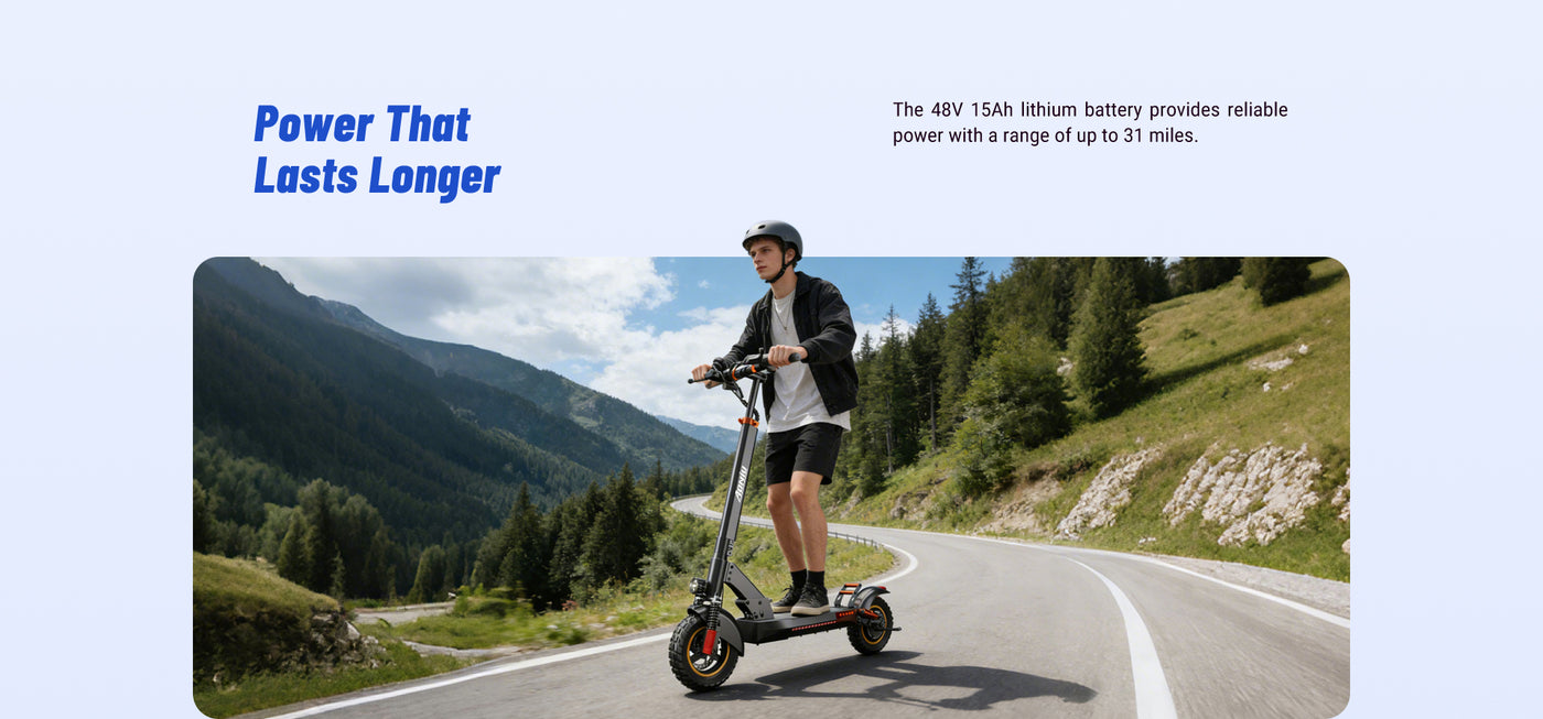 800W Motor & 10Ah Lithium Battery: This M4 electric scooter is a great way to get around for short trips,it comes with a 10Ah rechargeable Lithium battery that offers up to 31 miles,The 800W brushless motor delivers a max output of 800W to tackle inclines up to 20% and speeds up to 31 miles per hour.