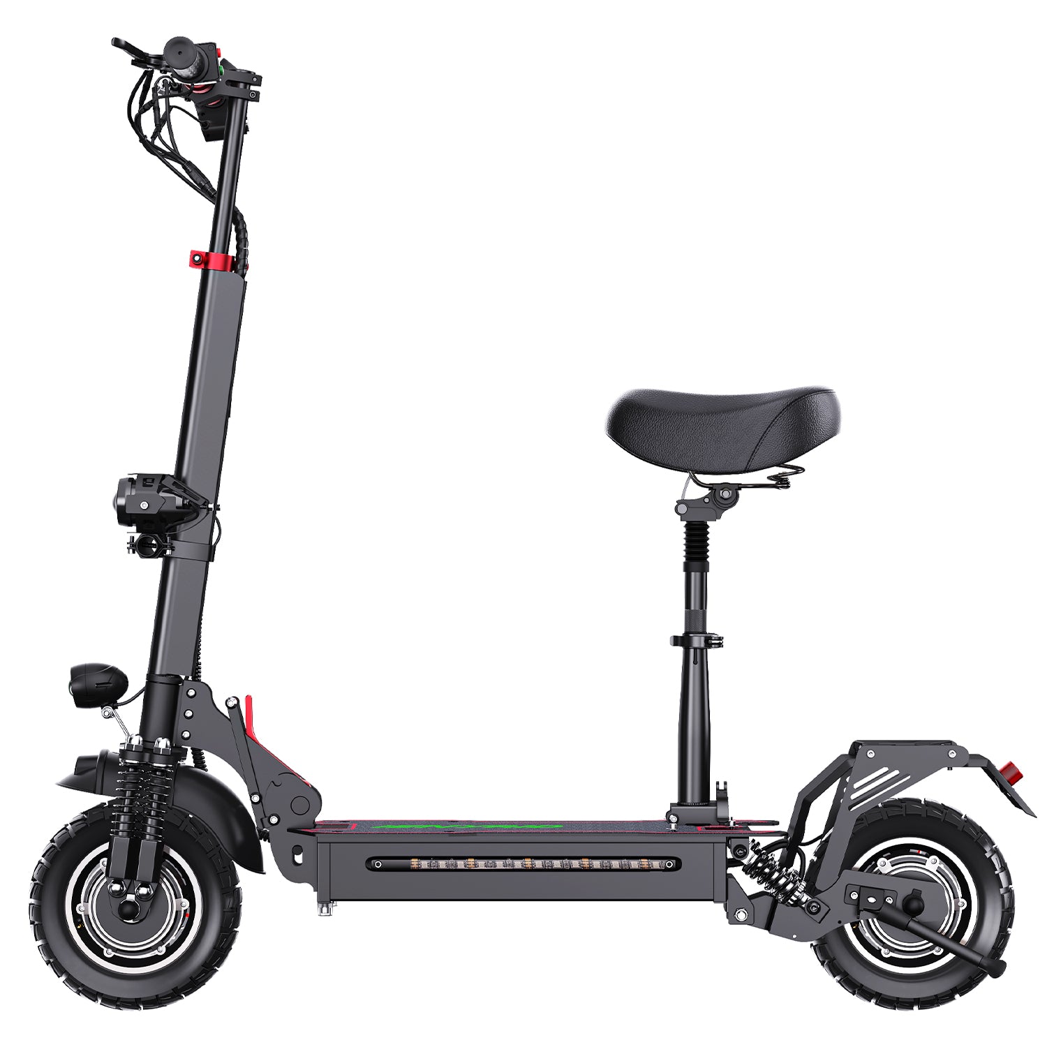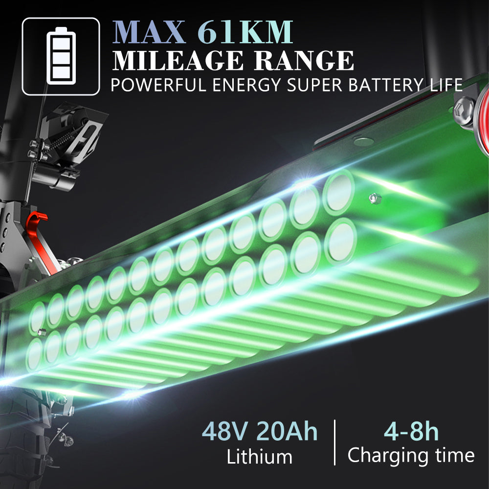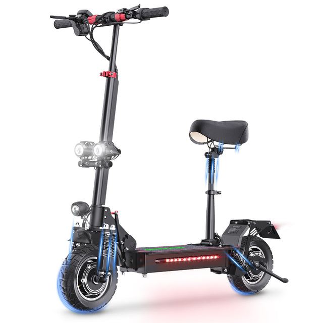 - 【Dual Motor e Scooter】The ES10 Adults Electric Scooter is equipped with powerful front and rear wheel drive 2000W motors,which max range reachs up to 37 mile,max speed reachs up 30 Mph,it is very easy to use and zip you around quickly,includes a detachable and height adjustable seat,the electric scooter can be folded even if the seat do not remove.